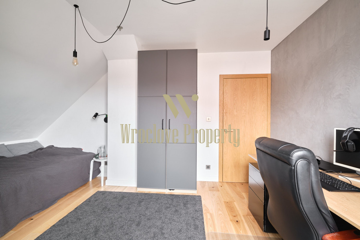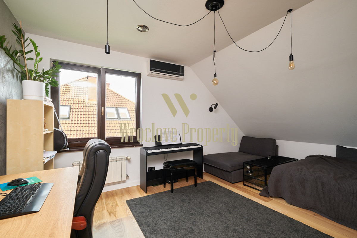 Cicha, spokojna i bezpieczna okolica. W pobliżu znajdują się liczne punkty handlowo - usługowe (apteka, piekarnie, kawiarnia, szkoła, przedszkole, żłobek). Niedaleko park handlowy z Biedronką, drogerią DM, sklepami typu Sinsay, Action, Tedi). Atutem tej lokalizacji jest też bliski dostęp do przystanku autobusowego i przystanku kolejki podmiejskiej, którą szybko i tanio można dojechać do centrum Wrocławia. W pobliżu również wschodnia obwodnica Wrocławia.