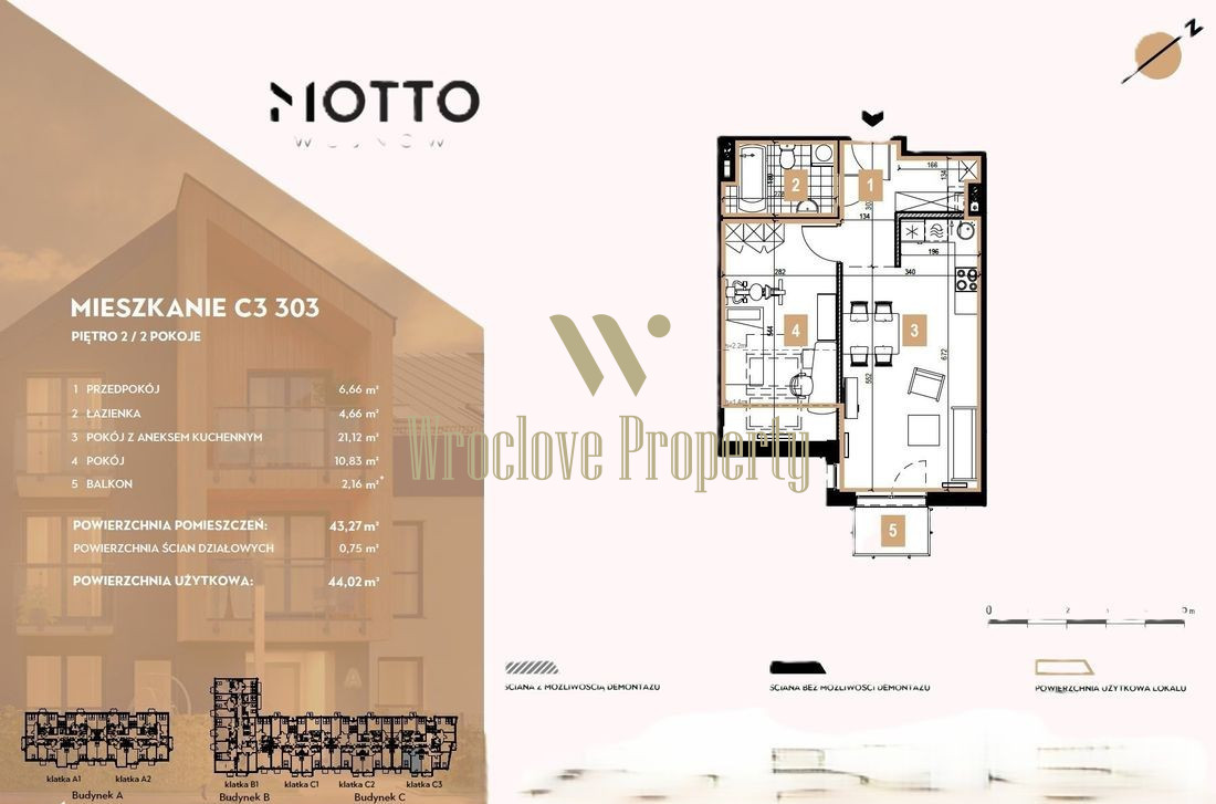Oferujemy na sprzedaż atrakcyjne mieszkanie o powierzchni 43 m², położone na zielonym i spokojnym osiedlu Strachocin we Wrocławiu. To idealne miejsce dla osób ceniących ciszę i przyrodę jednocześnie chcących pozostać blisko miasta. Osiedle jest bardzo dobrze skomunikowane, poza liniami autobusowymi w okolicy jest tez kolej podmiejska. Okolica charakteryzuje się niska zabudową, licznymi terenami zielonymi, przyjazną atmosferą. W sąsiedztwie znajdują się malownicze tereny spacerowe nad Odrą, ścieżki rowerowe, pola, lasy. W niedalekiej odległości (ok. 500m) znajduje się obwodnica Wschodnia Obwodnica Wrocławia co ułatwia wyjazd z miasta w każdym kierunku.
